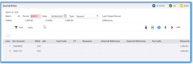 3. In Journal double entry transactions, make sure to add the Profit and Loss double entries rather than updating the retained earning control account manually. This is because Jobpac will back post an updated retained earning control account as part of the posting process.